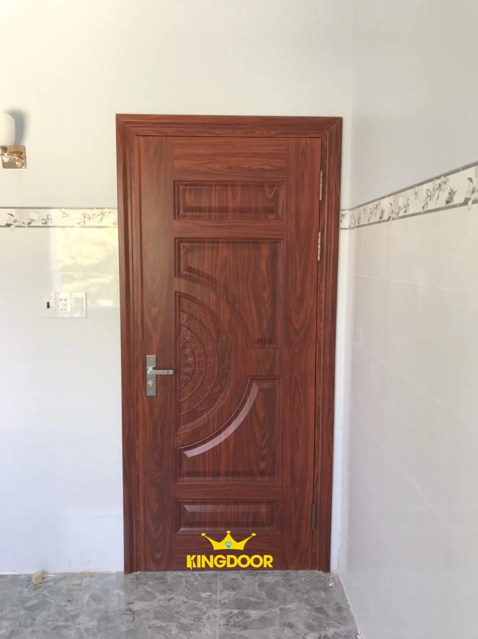 – Cuối cùng, cửa được phủ một lớp sơn để tạo độ bóng cho vân gỗ, tạo ra một màu đồng nhất cho toàn bộ cánh cửa giống y như màu gỗ thật.